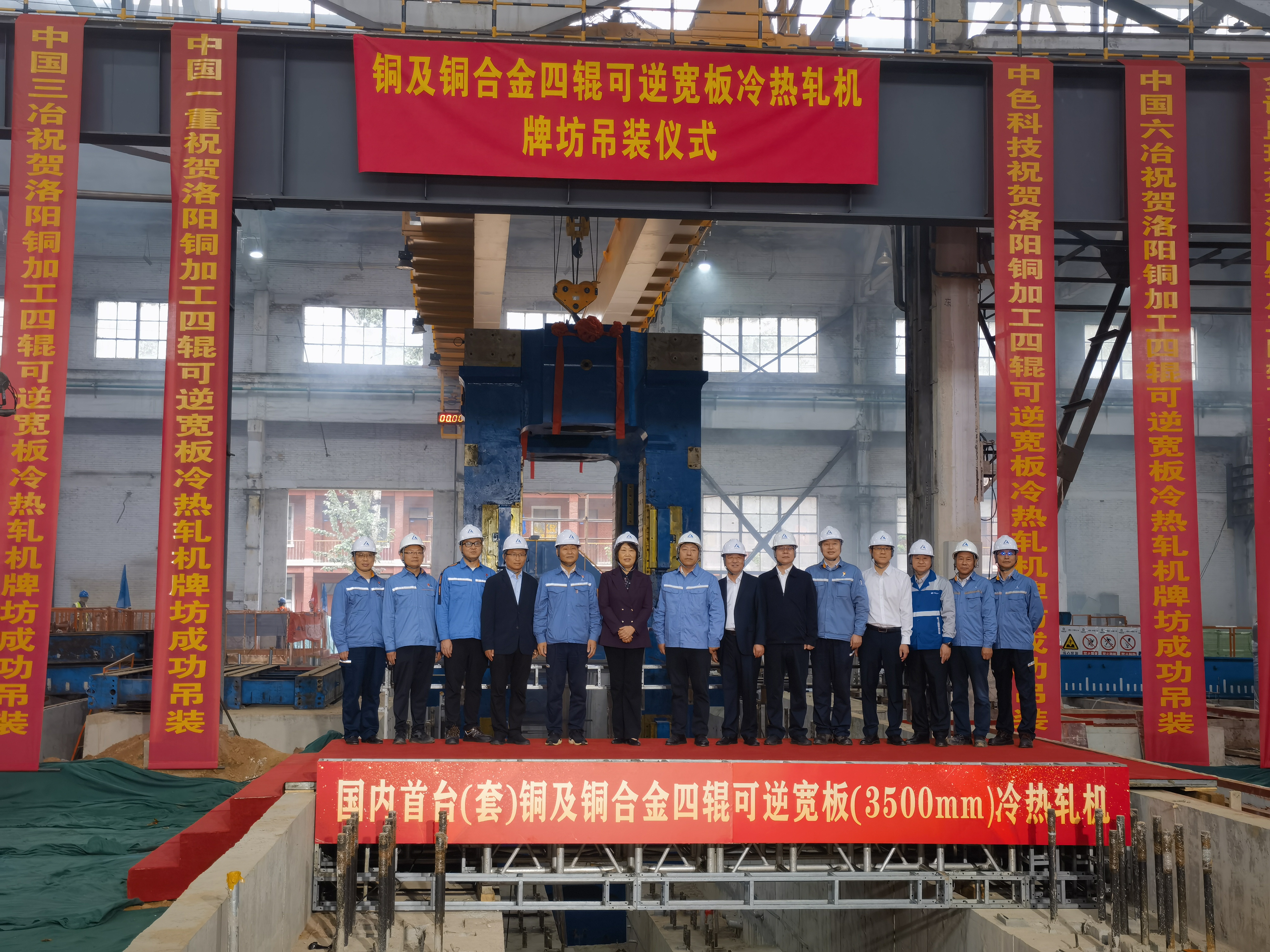 9月28日,電裝公司承建的國內首臺(套)銅及銅合金3500mm四輥可逆寬板冷熱軋機項目軋機牌坊吊裝一次成功,設備安裝轉入關鍵階段。