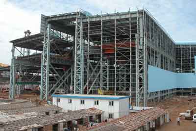 本工程是南京鋼鐵集團有限公司煉鋼主廠房工程,工程鋼結構單體構件重,整個廠房跨度大,是南京鋼鐵集團的重點項目。